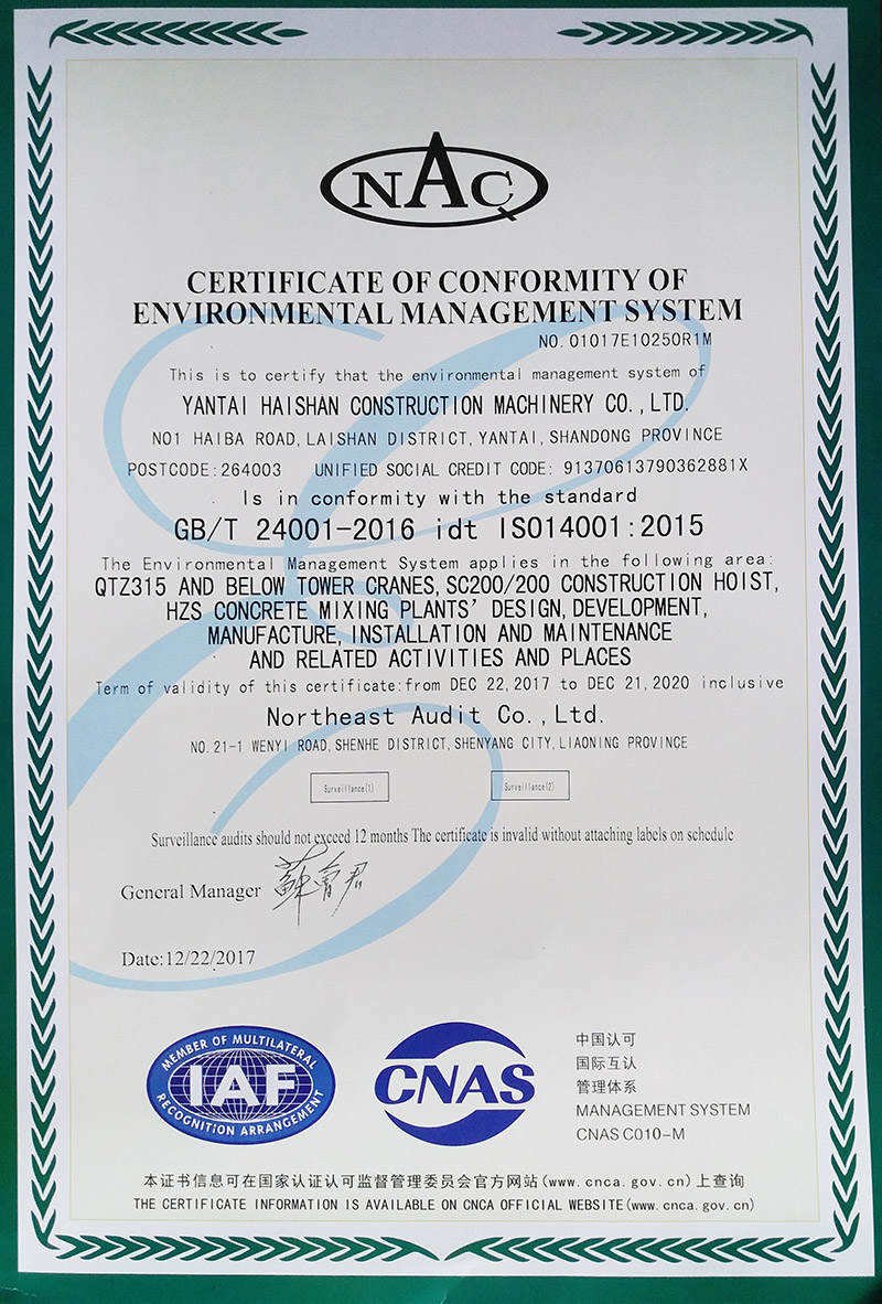 環(huán)境管理體系認(rèn)證證書